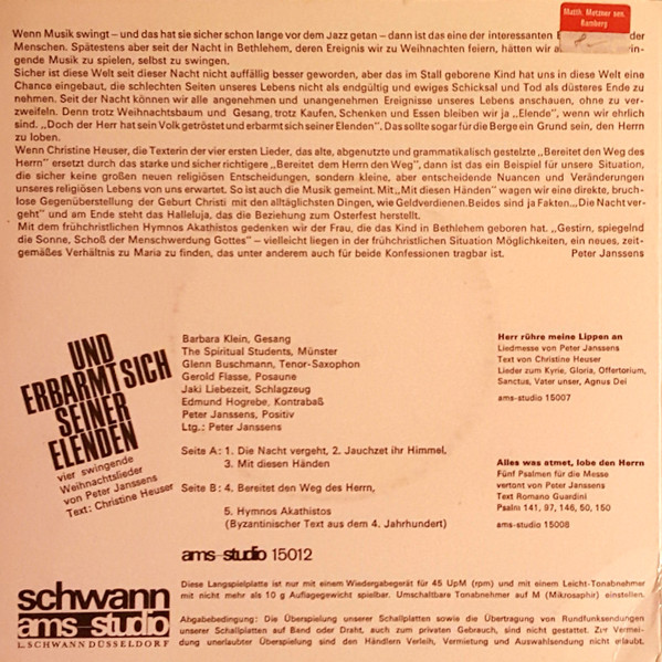 Label: Schwann AMS Studio - Cat#: ams-studio 15012