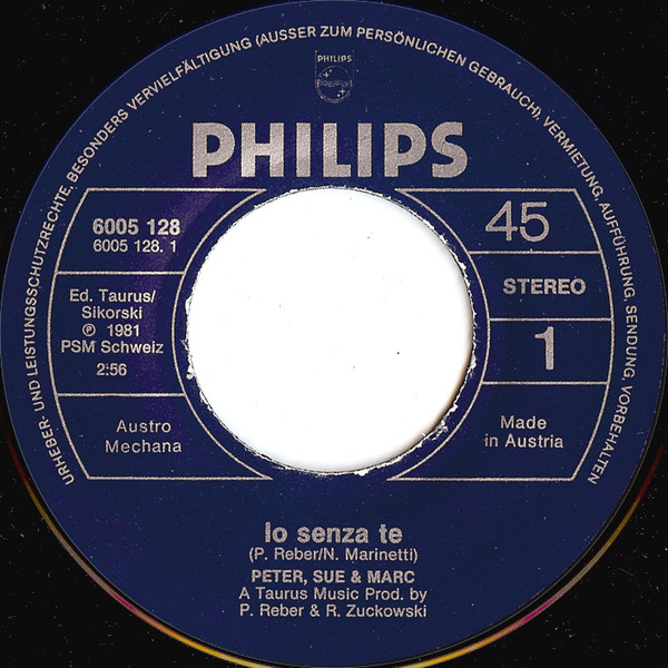 Vinyl / Peter, Sue & Marc - Io Senza Te