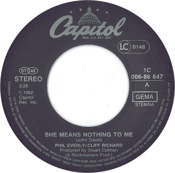 Vinyl / Phil Everly / Cliff Richard - She Means Nothing To Me