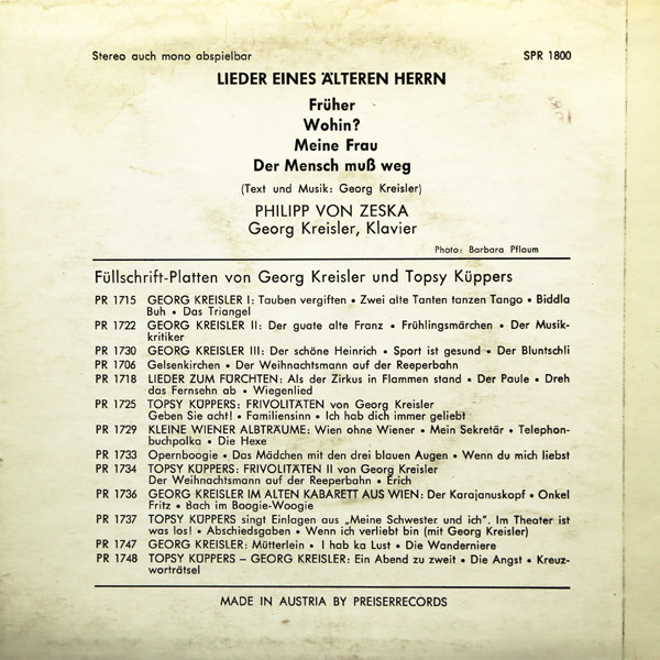 Vinyl / Philipp von Zeska - Lieder Eines Älteren Herrn