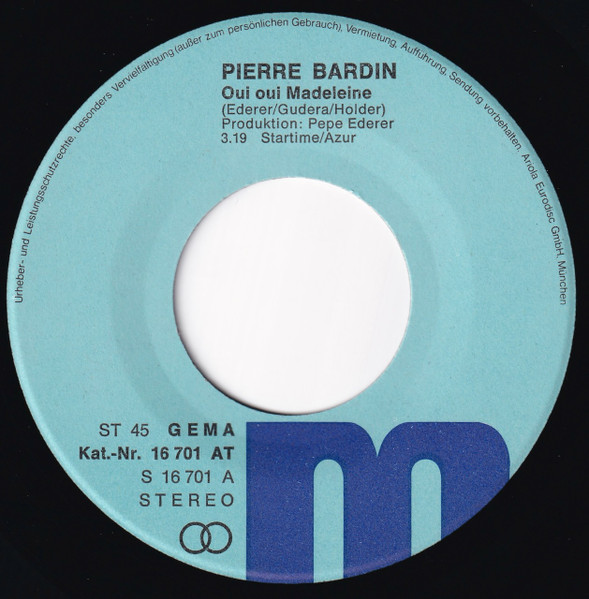 Vinyl / Pierre Bardin - Oui Oui Madeleine - Geh Doch Heut Nicht Allein Nach Haus