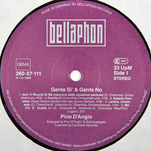 Vinyl / Pino D'Angio* - Gente Si & Gente No