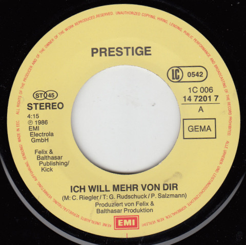 Vinyl / Prestige (11) - Ich Will Mehr Von Dir