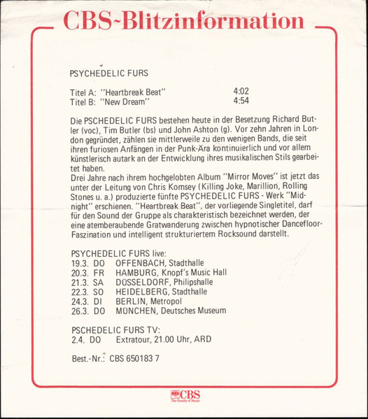 Vinyl / Psychedelic Furs* - Heartbreak Beat