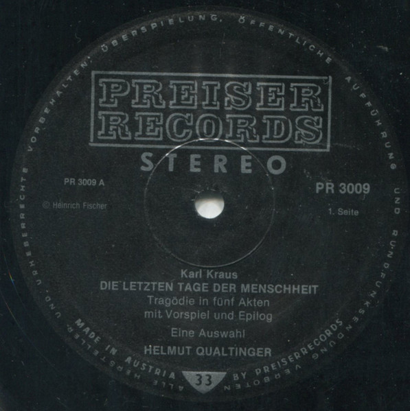 Vinyl / Qualtinger* Liest Karl Kraus - Die Letzten Tage Der Menschheit