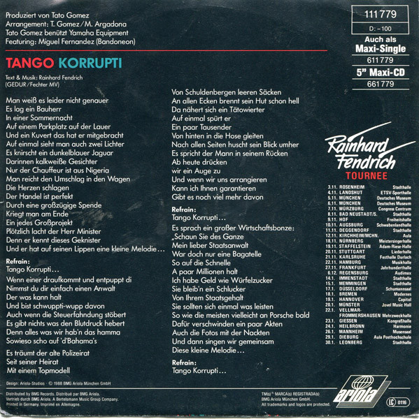 Vinyl / Rainhard Fendrich - Tango Korrupti