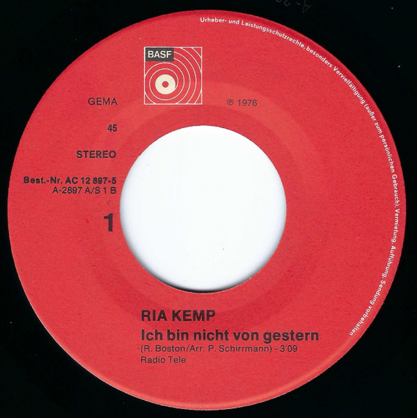 Vinyl / Ria Kemp - Ich Bin Nicht Von Gestern