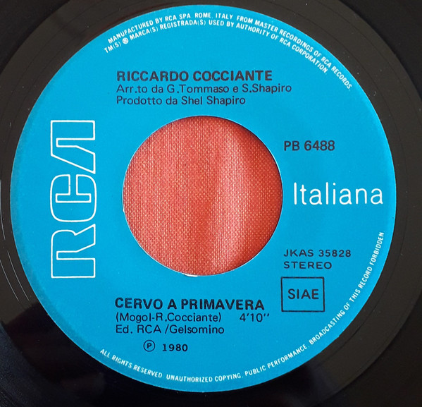 Vinyl / Riccardo Cocciante - Cervo A Primavera / Il Sufflè Con Le Banane