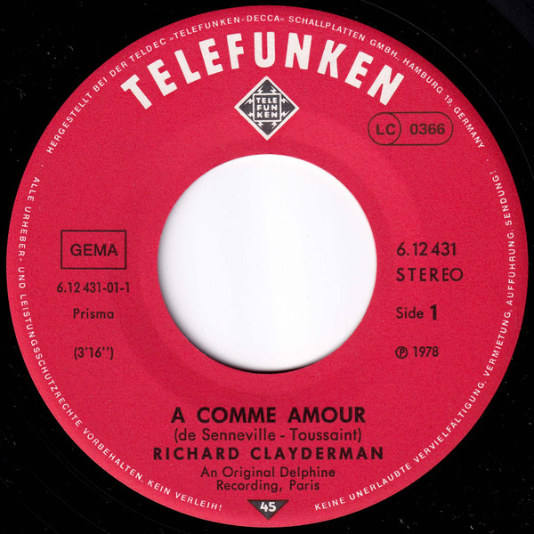 Vinyl / Richard Clayderman - A Comme Amour / Liebestraum (Rève D'Amour)