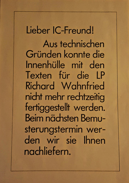 Vinyl / Richard Wahnfried - Time Actor
