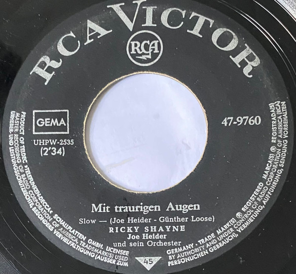 Vinyl / Ricky Shayne - Mit Traurigen Augen / Ich Sprenge Alle Ketten