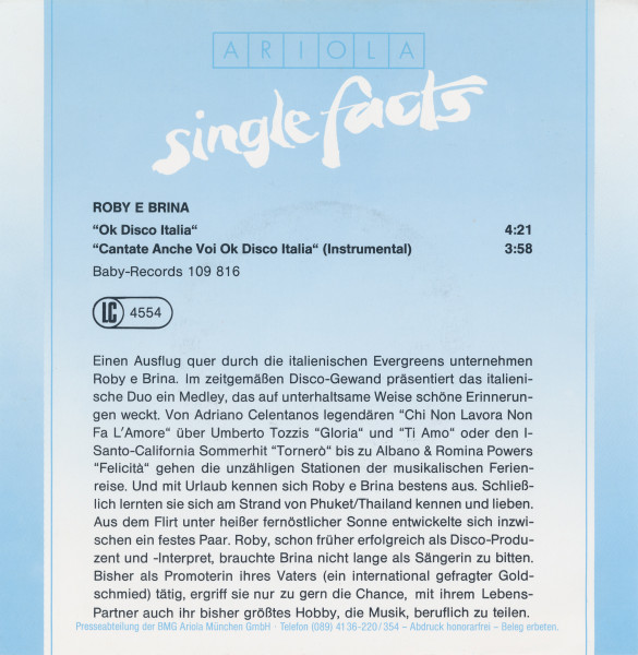 Vinyl / Roby & Brina* - Ok Disco Italia