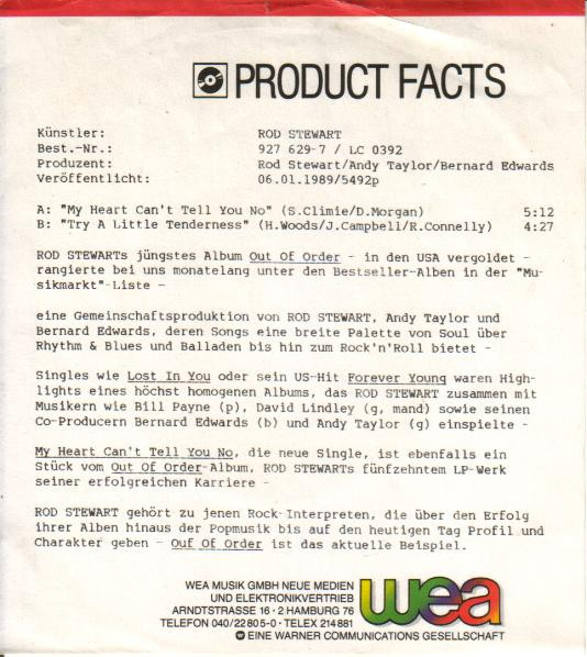 Vinyl / Rod Stewart - My Heart Can't Tell You No