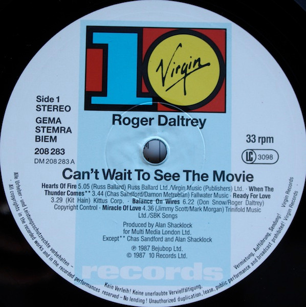 Vinyl / Roger Daltrey - Can't Wait To See The Movie