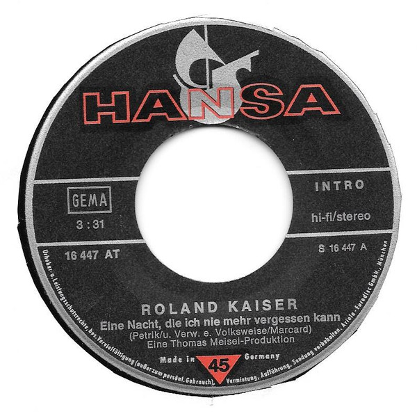 Vinyl / Roland Kaiser - Eine Nacht, Die Ich Nie Mehr Vergessen Kann