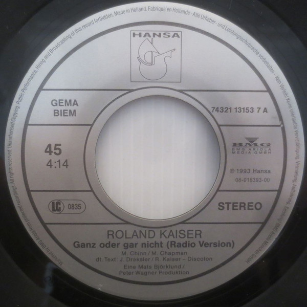 Vinyl / Roland Kaiser - Ganz Oder Gar Nicht