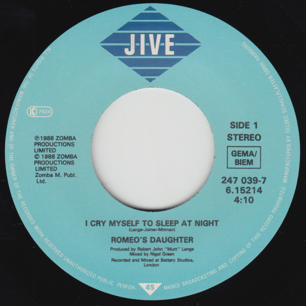 Vinyl / Romeo's Daughter - I Cry Myself To Sleep At Night
