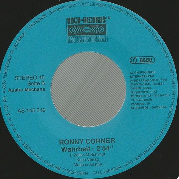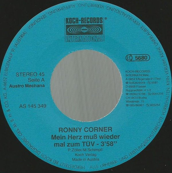 Vinyl / Ronny Corner - Mein Herz Muss Wieder Mal Zum Tüv