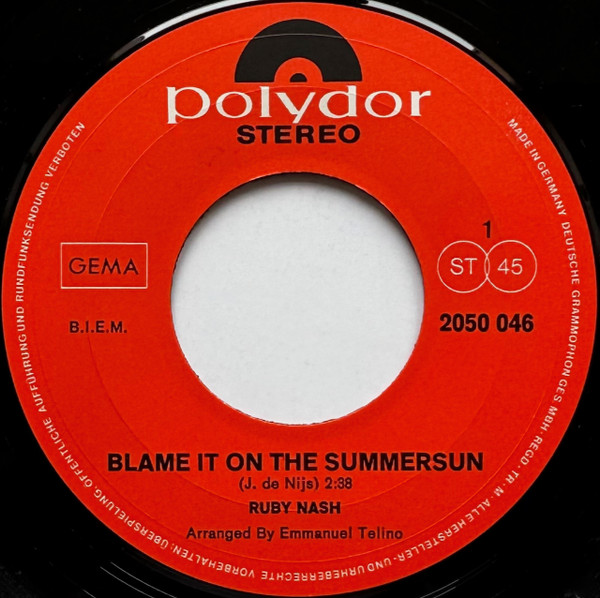 Vinyl / Ruby Nash - Blame It On The Summersun