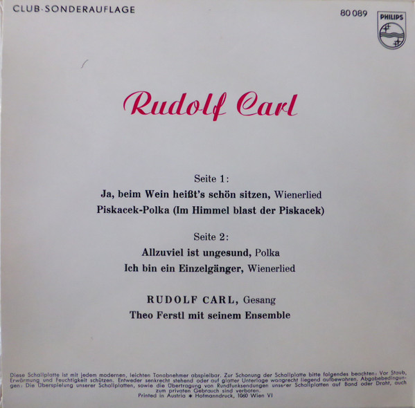 Vinyl / Rudolf Carl - Ja, Beim Wein Heißt's Schön Sitzen