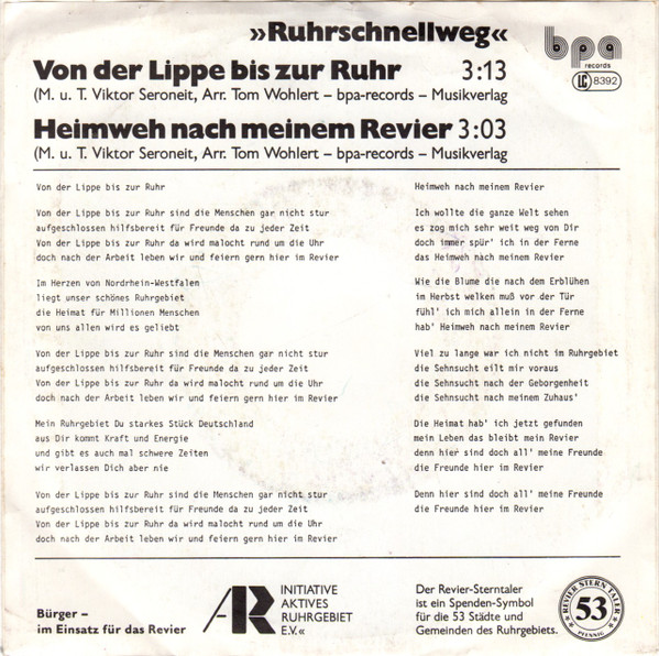 Vinyl / Ruhrschnellweg - Von Der Lippe ... Bis Zur Ruhr / Heimweh Nach Meinem Revier