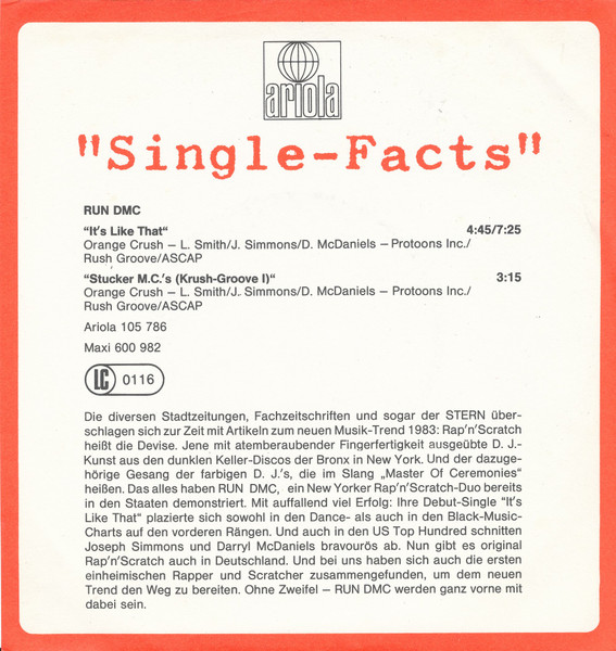 Vinyl / Run-D.M.C.* - It's Like That / Sucker M.C.'s (Krush Groove 1)