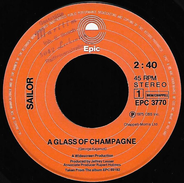 Vinyl / Sailor - A Glass Of Champagne / Panama