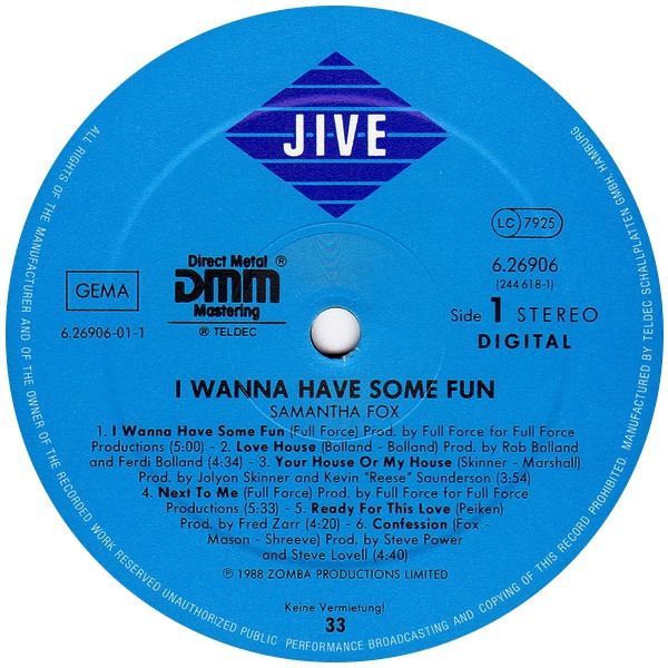 Vinyl / Samantha Fox - I Wanna Have Some Fun