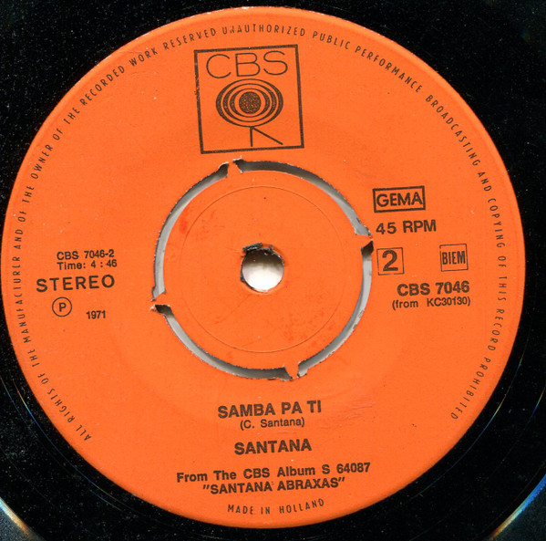 Vinyl / Santana - Oye Como Va / Samba Pa Ti