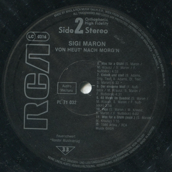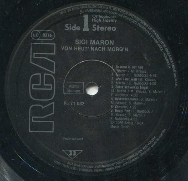 Vinyl / Sigi Maron - Von Heut' Nach Morg'n