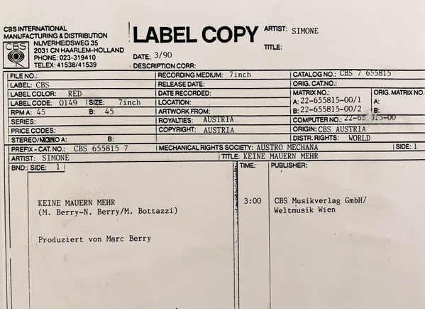 Genre/Style: Pop, Europop, Schlager