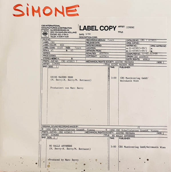 Vinyl / Simone (27) - Keine Mauern Mehr