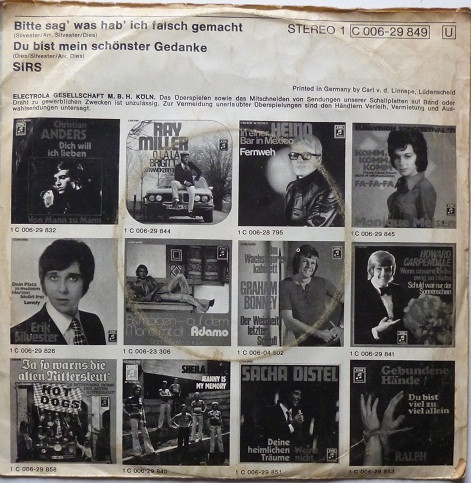 Vinyl / Sirs - Bitte Sag' Was Hab' Ich Falsch Gemacht / Du Bist Mein Schönster Gedanke