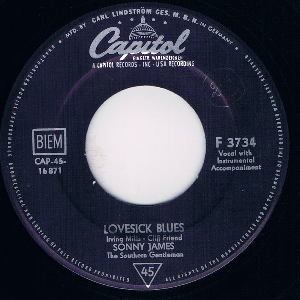 Vinyl / Sonny James The Southern Gentleman* - Dear Love / Lovesick Blues
