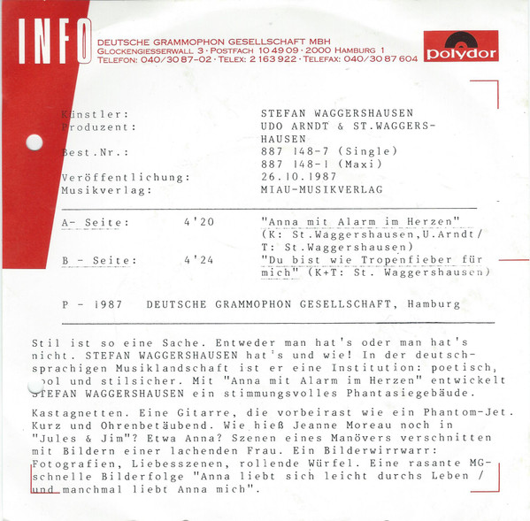 Vinyl / Stefan Waggershausen - Anna Mit Alarm Im Herzen