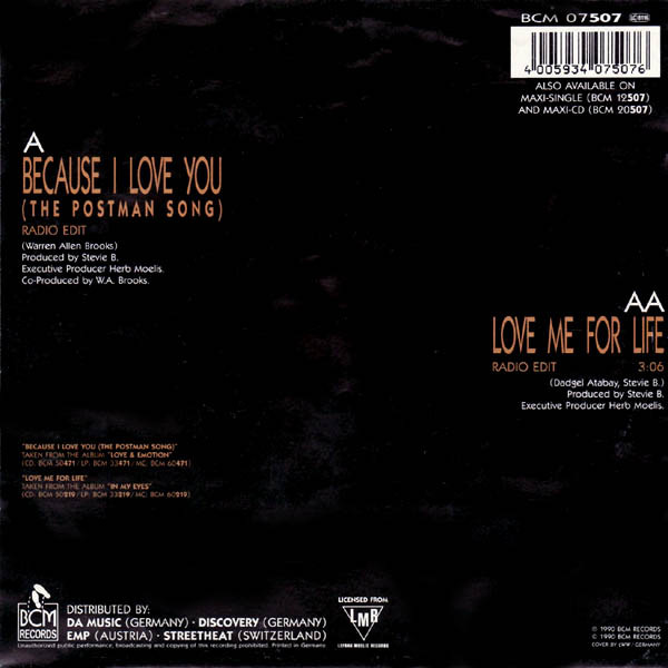 Vinyl / Stevie B.* - Because I Love You (The Postman Song) / Love Me For Life