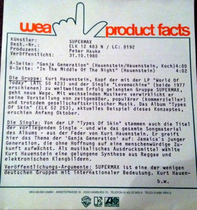 Vinyl / Supermax - Ganja Generation / In The Middle Of The Night