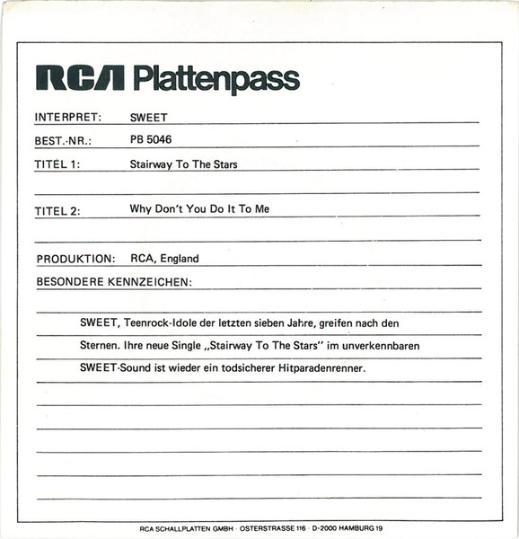Vinyl / Sweet* - Stairway To The Stars