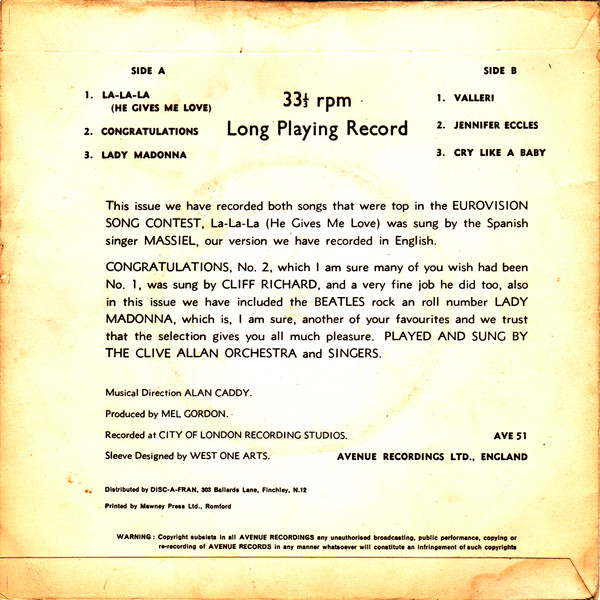 Vinyl / The Clive Allan Orchestra And Singers - La-La-La