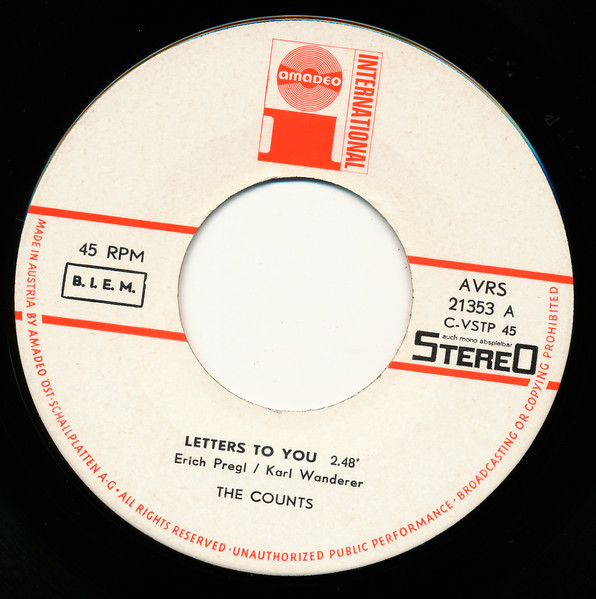 Vinyl / The Counts (6) - Letters To You / Cry, Cry, Baby
