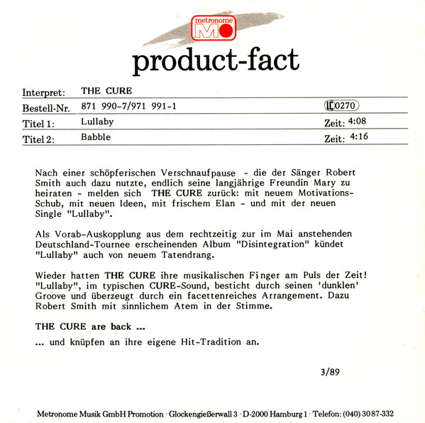 Label: Fiction Records - Cat#: 871 990-7