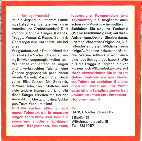 Label: Hansa Record - Cat#: 19 540 AT