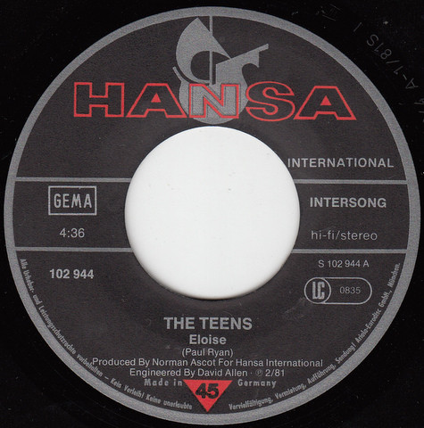 Vinyl / The Teens - Eloise / Too Bad Ya Don't Love Me