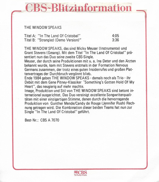 Vinyl / The Window Speaks - In The Land Of Christobal