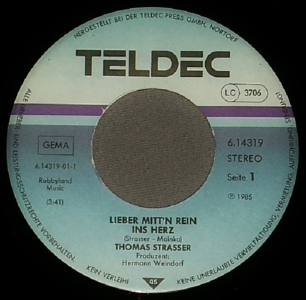 Vinyl / Thomas Strasser - Lieber Mitt'n Rein Ins Herz