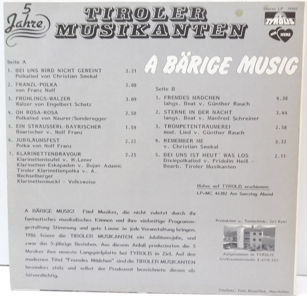 Vinyl / Tiroler Musikanten (2) - 5 Jahre A Bärige Musig