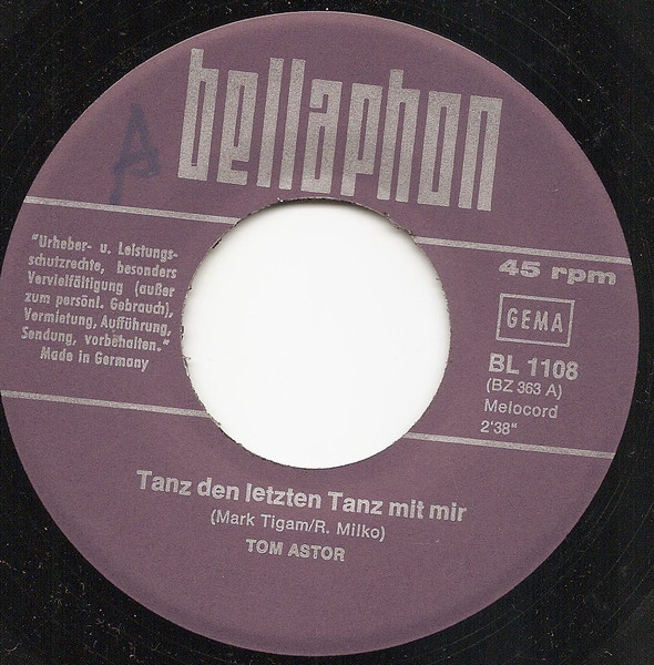 Vinyl / Tom Astor - Tanz Den Letzten Tanz Mit Mir / Kleine Signorina