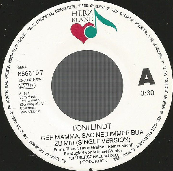 Vinyl / Toni Lindt - Geh Mamma, Sag Ned Immer Bua Zu Mir