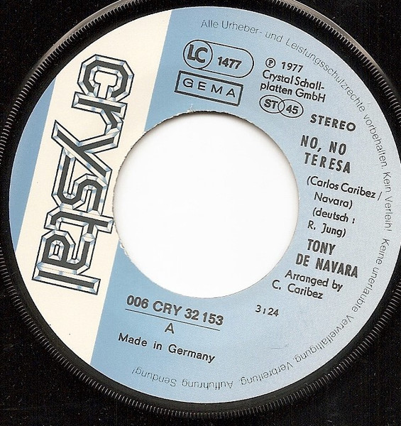 Vinyl / Tony De Navara - No, No, Teresa