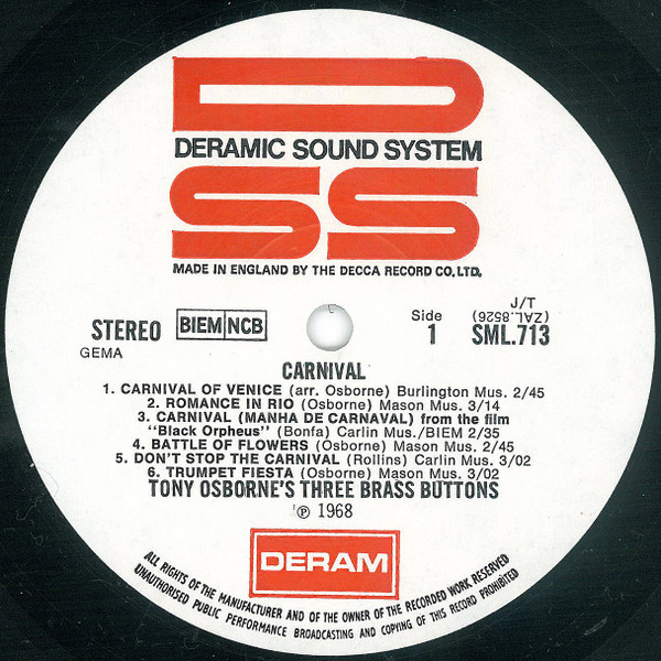 Vinyl / Tony Osborne's Three Brass Buttons - Carnival